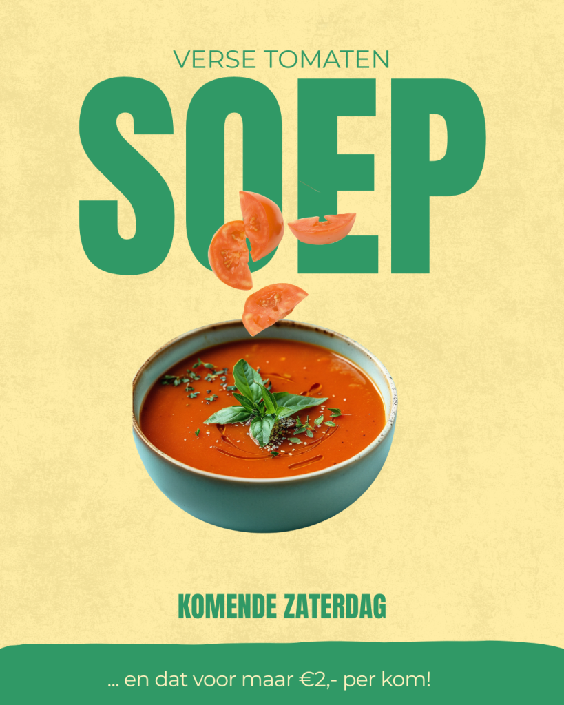 Special van de week: Verse Tomatensoep! 8 oktober, 2025 | Overig Komende zaterdag staat er een nieuwe special op het menu! Vanaf 12:00 te bestellen in de kantine, zelfgemaakte verse tomatensoep!