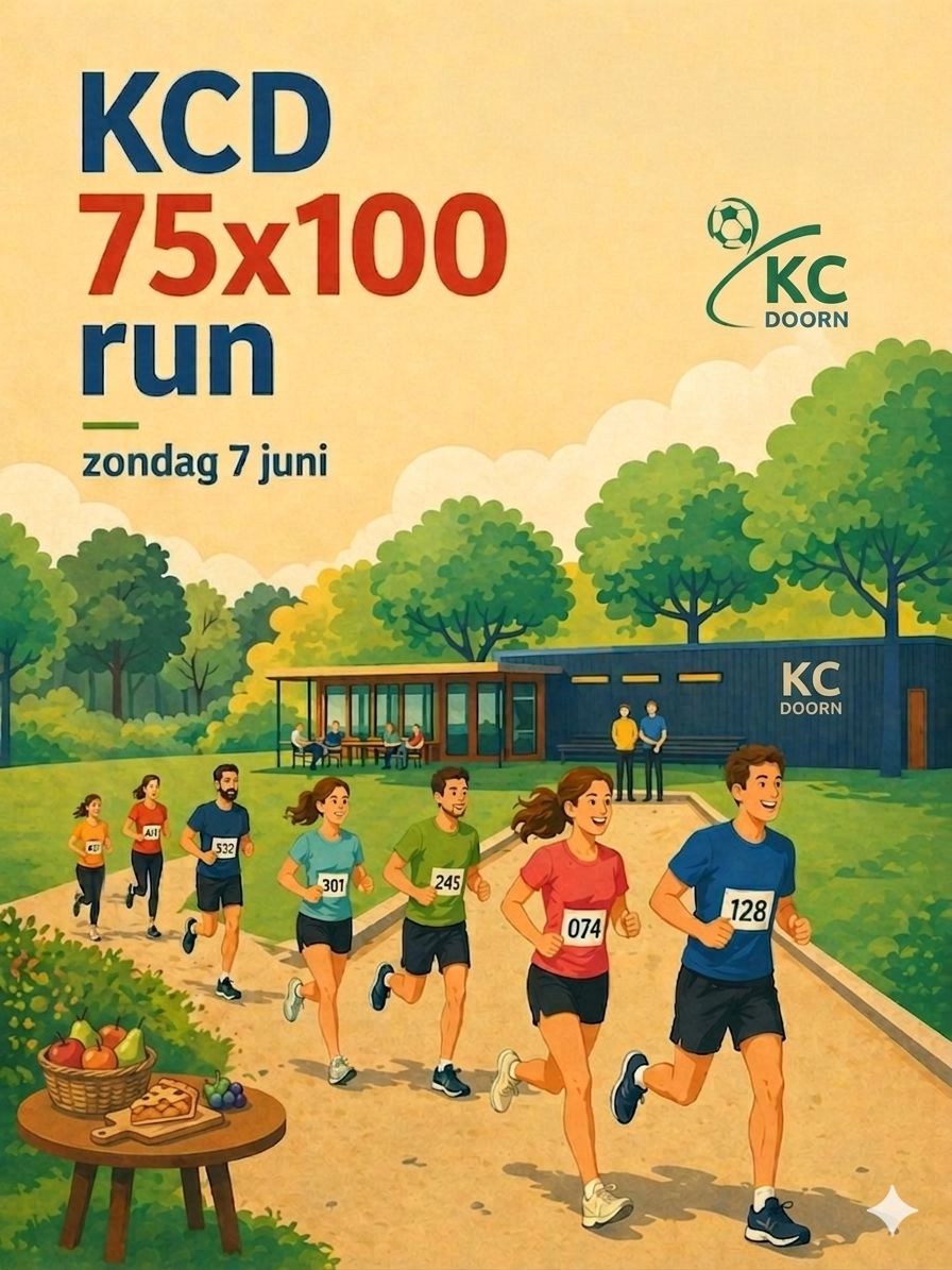 Wil jij jezelf nog 1x uitdagen dit seizoen, een persoonlijk record lopen of gewoon een leuke en gezellige wandeling maken? Doe dan op zondag 7 juni ook mee met de KCD Jubileum 75×100 RUN! We starten vanaf de kantine en lopen daarna over een prachtig parcours van 7,5 km door de Utrechtse Heuvelrug. Langs de route is een verzorgingspunt met hapjes en sapjes. We sluiten dit evenement af met de gezellige blarenborrel! Zin in? Schrijf je dan vóór 25 mei in via [email protected]. De eigen bijdrage is € 7,50.
